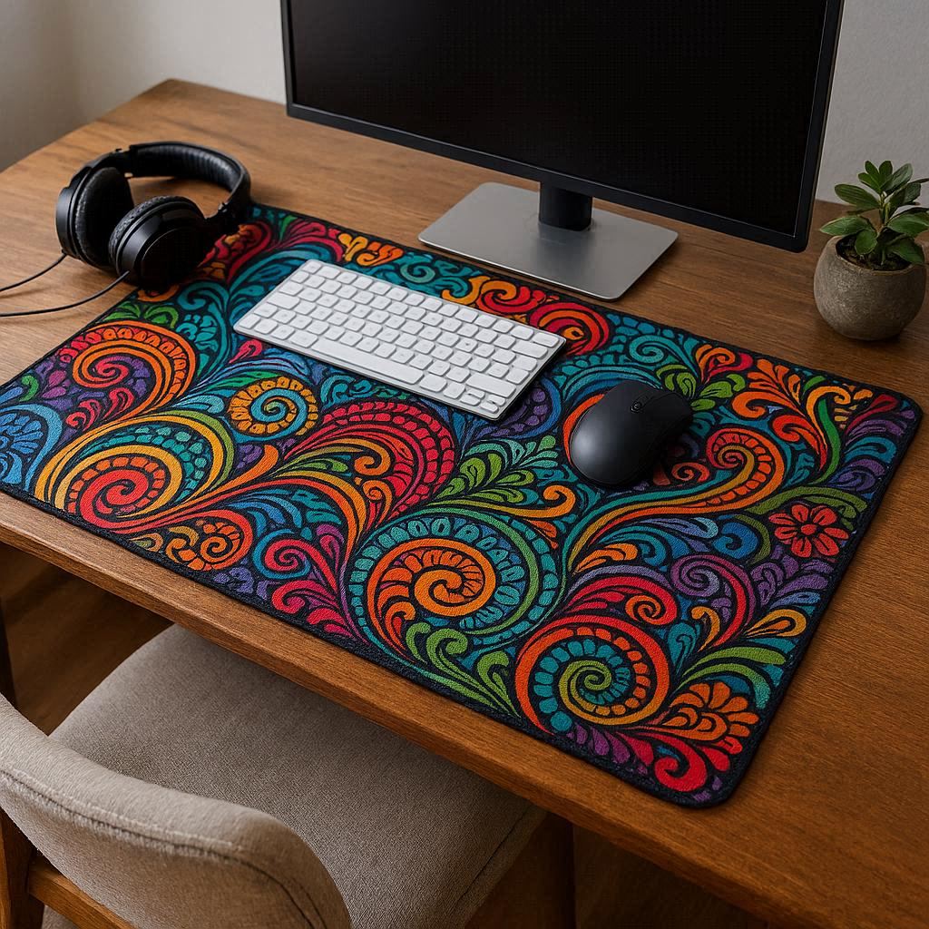 An extra-wide (XXL) mat with stitched edges, designed to accommodate multiple monitors and create an immersive, organized work zone.